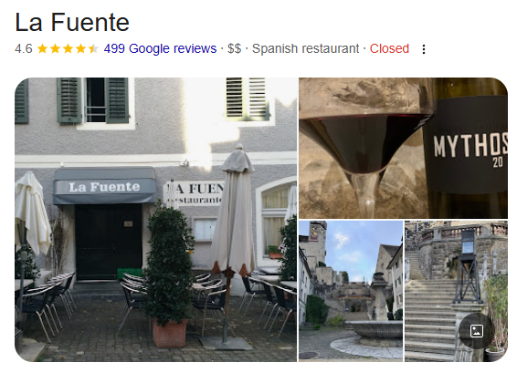 Wir haben am Abend im Restaurant La Fuente reserviert. Bitte merkt Euch, was ihr bestellt habt.